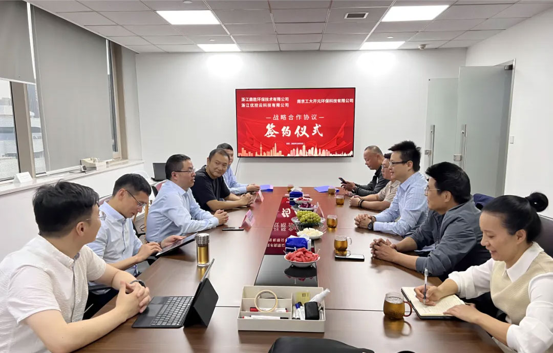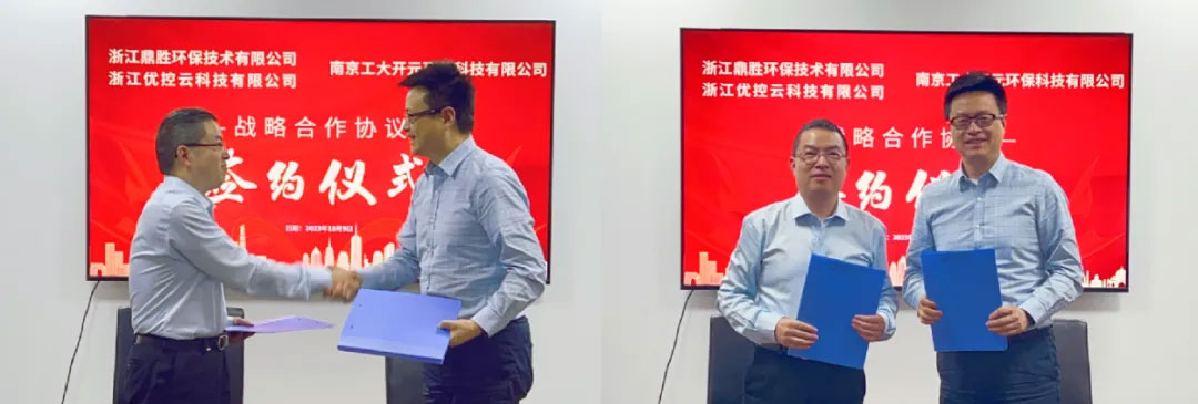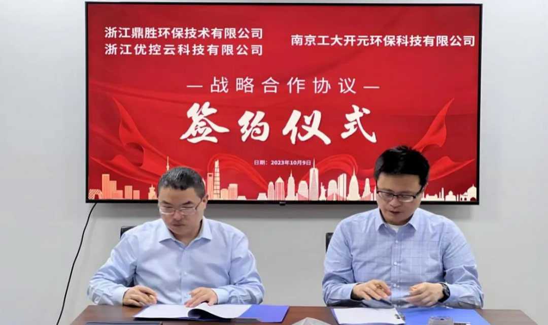 [ 强链计划 ]10月9日,南京工大开元环保科技有限公司与浙江鼎胜环保技术有限公司、浙江优控云科技有限公司在杭州举行战略合作协议签约仪式,结成深度战略合作伙伴。